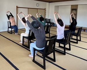 椅子を使って行うことで正しい姿勢を作りやすくなります。